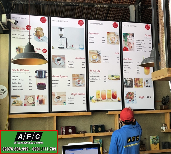 Quảng Cáo AFC chuyên thiết kế, thi công hộp đèn quảng cáo như hộp đèn hiflex, hộp đèn mica, hộp đèn led, hộp đèn hút nổi mica giá rẻ tại Phú Quốc. Làm bảng biển hộp đèn giá rẻ, chất lượng, uy tín, lắp đặt tận nơi theo mọi yêu cầu của khách hàng.