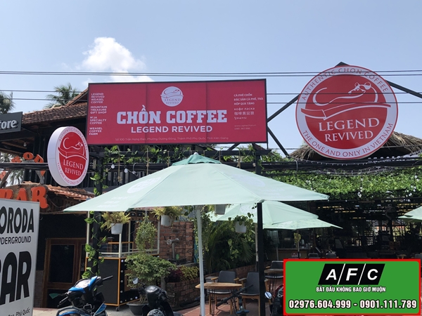 Thiết kế, thi công bảng hiệu hộp đèn Chồn Coffee tại Phú Quốc