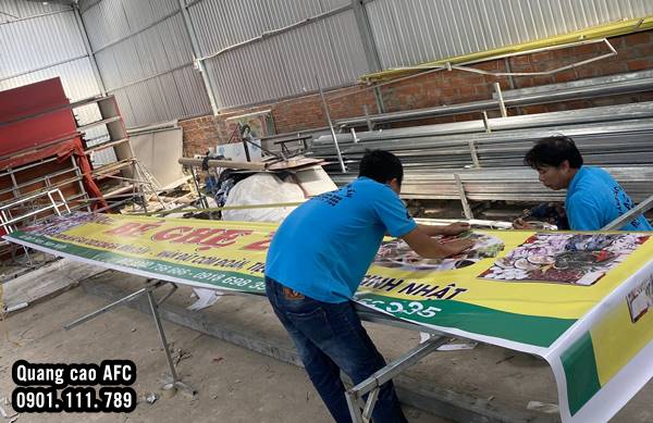 Hình ảnh thi công biển quảng cáo in bạt tại Phú Quốc