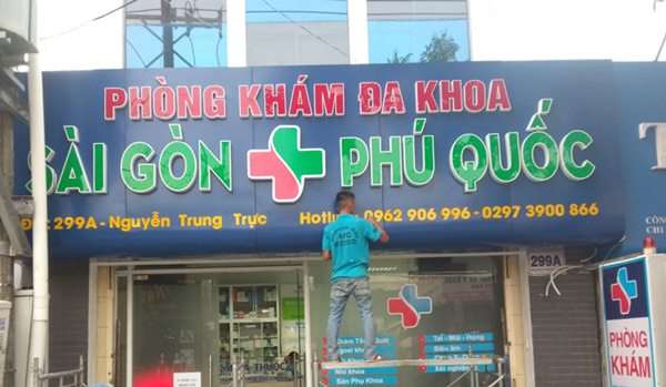 Hình ảnh thi công bảng hiệu Phòng khám đa khoa Sài Gòn – Phú Quốc